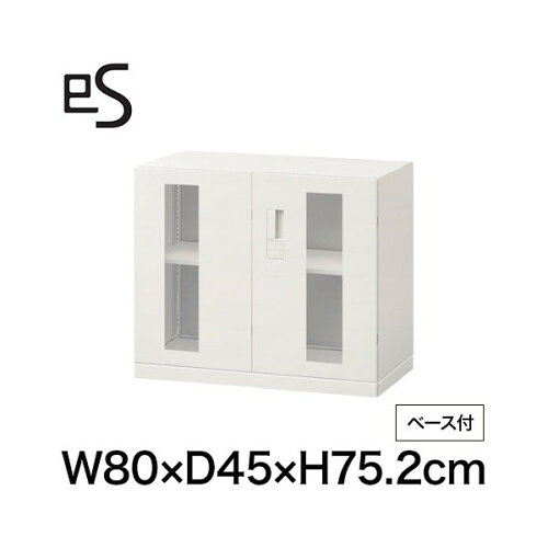 オフィスキャビネット イトーキ エス キャビネット ガラス両開き 扉 型 下段用 スマートロック 幅80cm 奥行45cm 高さ75.2cm /ベース付 色:ホワイト系【自社便/開梱・設置付】