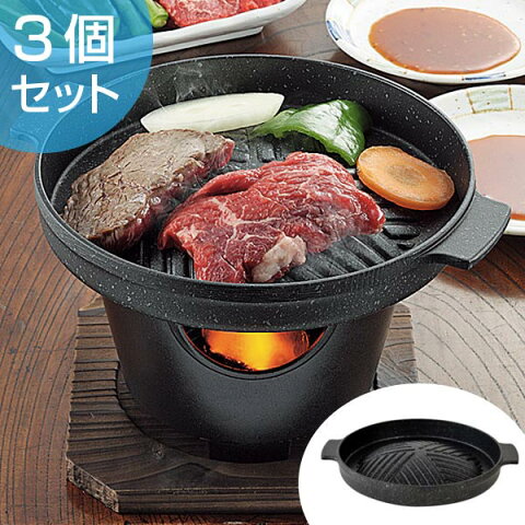 マーブルコート 丸型焼肉グリル 懐石 3個セット ( 懐石料理 焼肉プレート 焼肉グリル プレート 焼肉鍋 焼肉用 1人用 一人用 なべ 鉄板焼き 鉄板料理 調理用品 キッチン用品 フッ素加工 )【4500円以上送料無料】