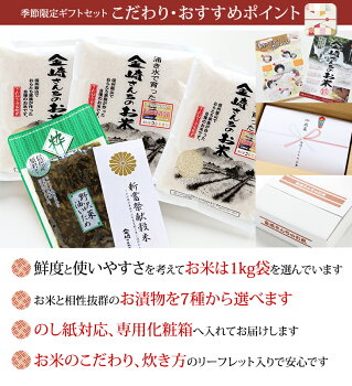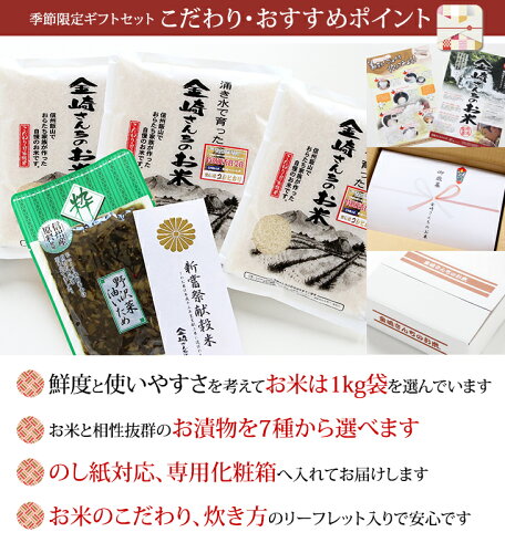 \食フェス300円OFFクーポン配布中・利用期間12/1(土)24時間限定/【送料無料・季節限定ギフトセット】お米ギフト特別栽培米コシヒカリ1kg×8袋+選べるお漬物3袋【お歳暮 冬ギフト こしひかり 米 贈答用 長野県飯山産 金崎さんちのお米】